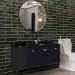 Complete your bathroom with this fabulous wall mounted vanity unit. With its vintage, curved design and round knobs, it will add a touch of sophistication to a traditional bathroom. The dark colour is designed to stand out while being versatile enough to suit a range of decors. We recommend pairing this unit with white marble tiles to contrast the grey and complement the black marble-effect countertop.