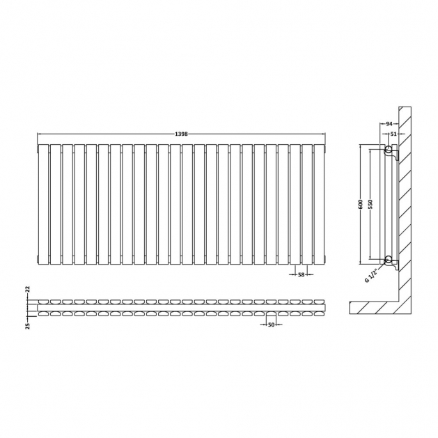 Horizontal Double Panel Radiator 600 x 1398 - Satin White - VHEA040