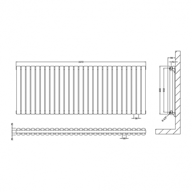 Horizontal Double Panel Radiator 600 x 1572 - High Gloss White - VHEA019