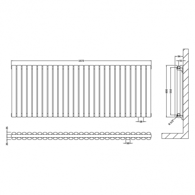 Horizontal Double Panel Radiator 600 x 1572 - Anthracite - VHEA025