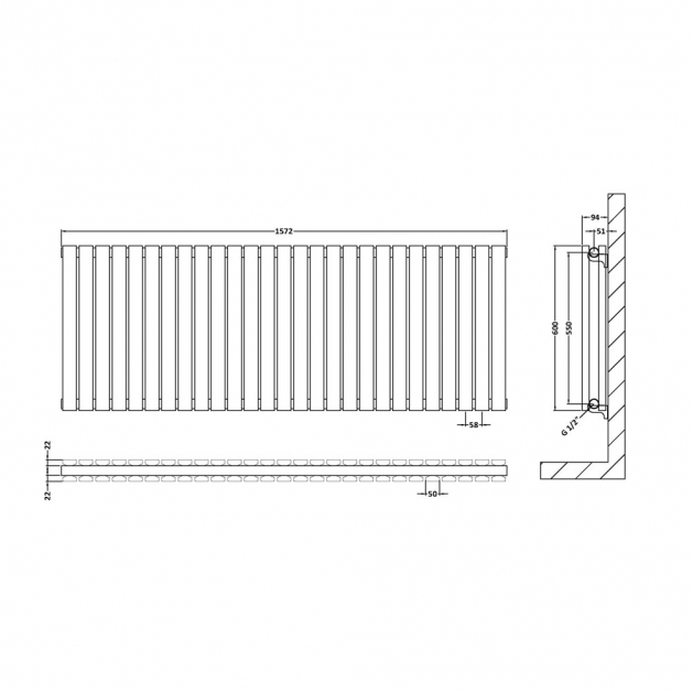 Horizontal Double Panel Radiator 600 x 1572 - Satin White - VHEA041