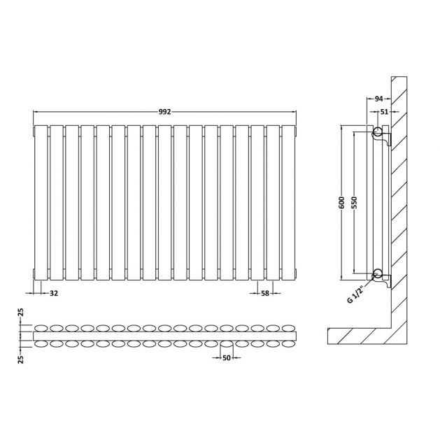 Horizontal Double Panel Radiator 600 x 992 - Anthracite - VHEA023