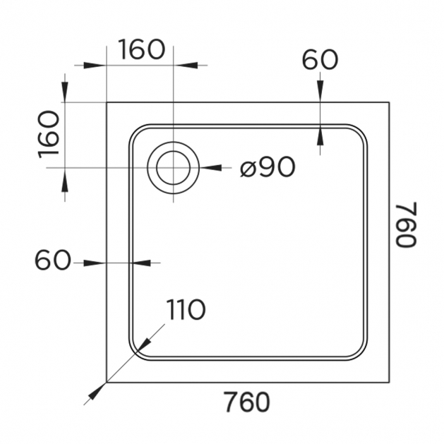 Hydro45 760 x 760mm Square Shower Tray 760 x 760mm White