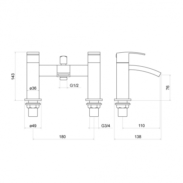 Irwell Bath Shower Mixer with Shower Kit - By Voda Design Chrome