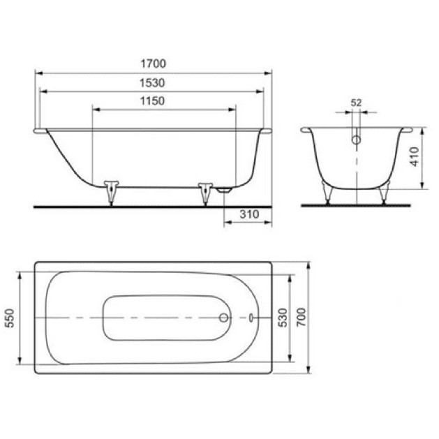 Kaldewei Eurowa 312 Steel Bath 1700 x 700mm 2 Tap Holes 1700 x 700mm White