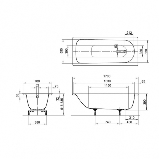 Kaldewei Eurowa 1700mm No Tap Hole Anti Slip Steel Bath 1700 x 700mm White