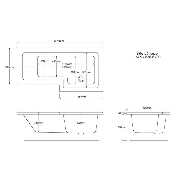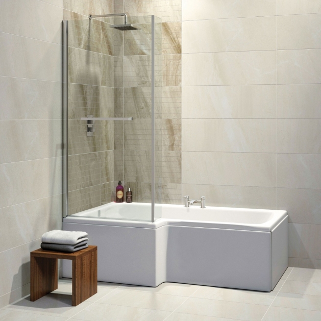 L Shape Shower Bath with Bath Screen and Panel 1675 x 850MM - Elite