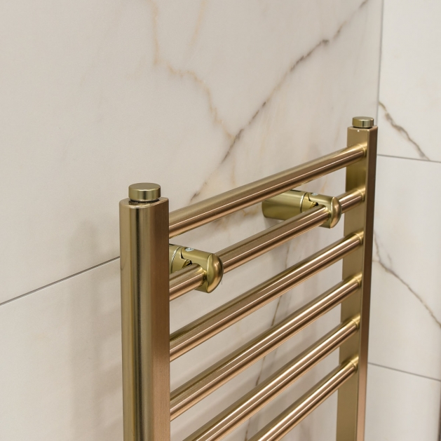 Lazzarini Silea Straight Heated Towel Rail Brushed Brass 1200mm x 500mm Brushed Brass