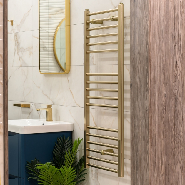 Lazzarini Silea 1200 x 500mm Straight Heated Towel Rail - Brushed Brass