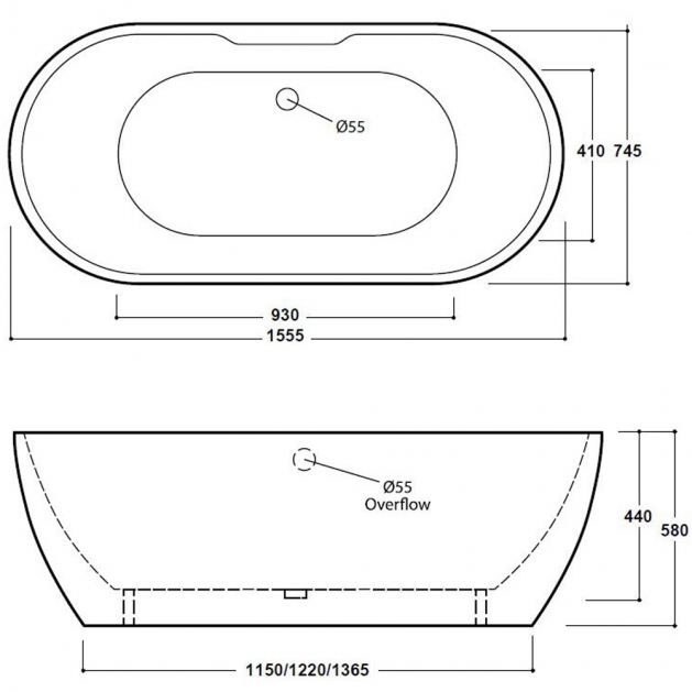 Freestanding Modern Double Ended Bath - Manhattan By Voda Design 1555mm White