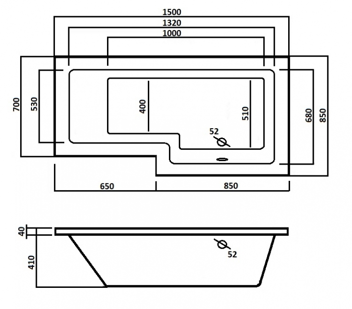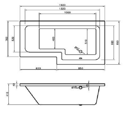 The bath is constructed from premium grade 5mm acrylic which is fully reinforced with fibre glass giving the bath extra strength as it will be used for showering.