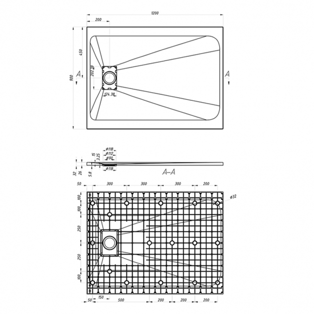 Maya Kai Rectangular Shower Tray 900X1200mm Grey