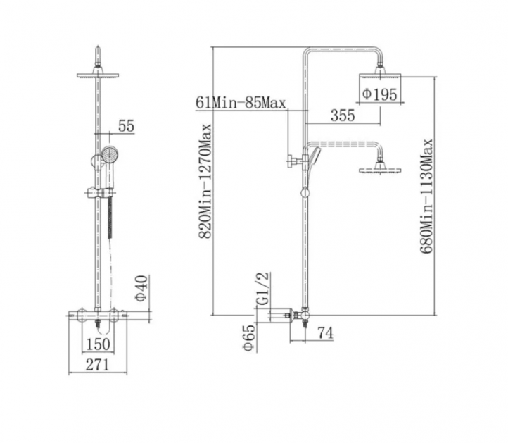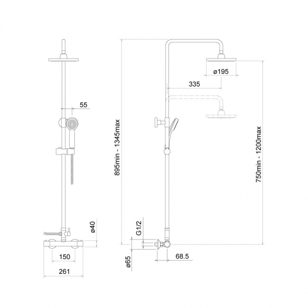 Medina Round Exposed Adjustable Thermostatic Shower Set - By Voda Design Chrome