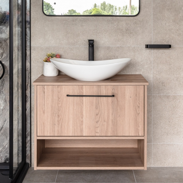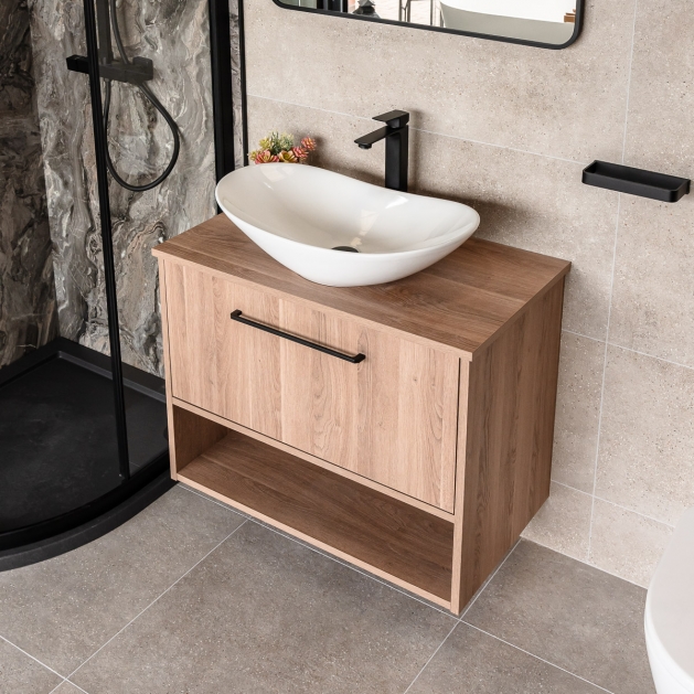 800mm Wall Mounted Vanity Unit & Worktop - Brown Cueno - By Voda Design Oak