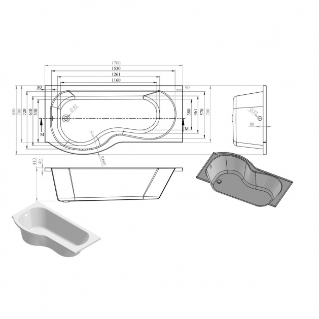 - P & L shaped shower baths — versatile solutions for combined bathing and showering areas.