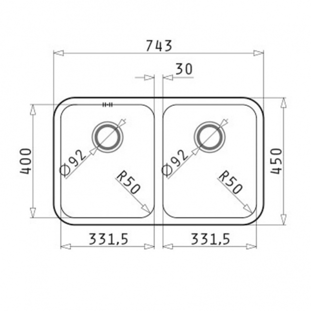 - 2 Bowls Both 400mm (w) x 331.5mm (L)
