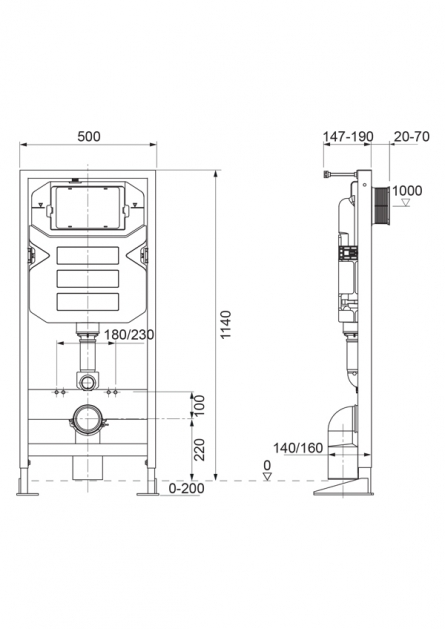 RAK Ceramics Front Flush WC Frame with Concealed Cistern 114cm