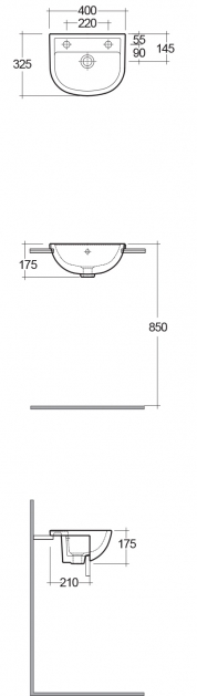 RAK Compact 40cm Semi Recessed Basin 1th RH 400mm