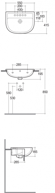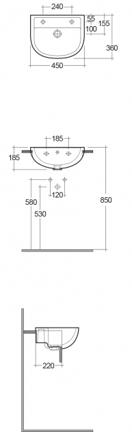 RAK Compact 45cm Semi Recessed Basin 1th RH 450mm