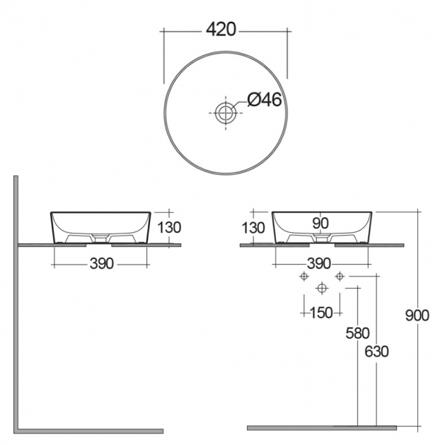 RAK Feeling 42Cm Round Counter Top Wash Bsn