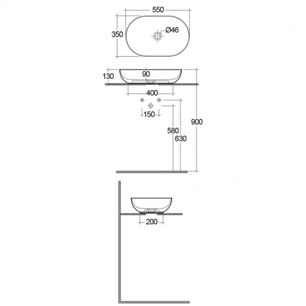 RAK Feeling 55cm Oval Counter Top Wash Basin