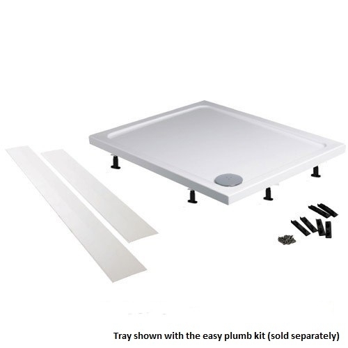 Optional extras with this shower tray include a 90mm fast flow shower waste and the easy plumb kit which includes legs for your tray and a plinth so that the tray can be fitted off the ground, allowing for easier installation.