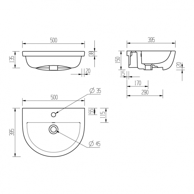 Series11 500x390mm 1TH Semi Recessed Basin White