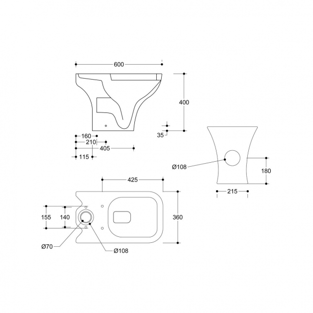 - Distance from soil pipe spigot to wall: 155mm