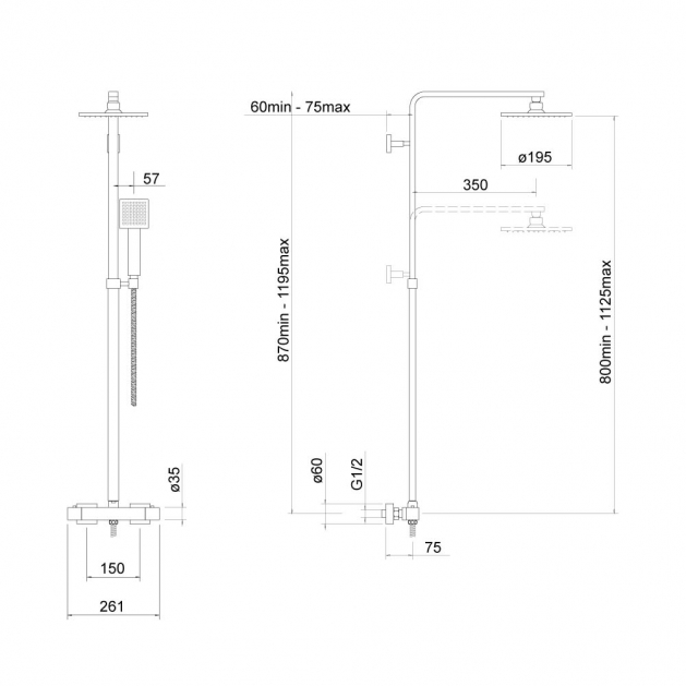 Severn Square Exposed Adjustable Thermostatic Shower - By Voda Design Chrome