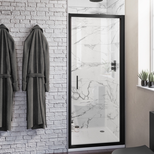 1700 x 800mm Black Inline 2 Sided Shower Enclosure Hinged Door - 8mm