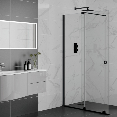 Black Grid 8mm Wetroom Glass Enclosure With Black Profile Aquadart Matrix