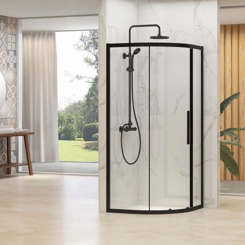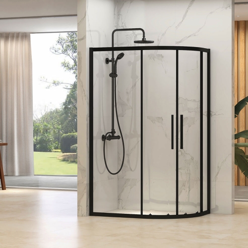 1000 x 800mm Offset Quadrant Black 2 Door Enclosure - Kaso Black By Voda Design
