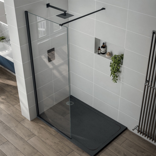 Introducing our new range of black slate effect shower trays by Aquadart, proudly manufactured in Britain. The slimline 45mm height with textured slate effect mimics natural textures are ideal for low level installations. The design provides a stable base, low profile for easy access into the showering area and features a 90mm waste hole to allow water to be drained away from the standing area.