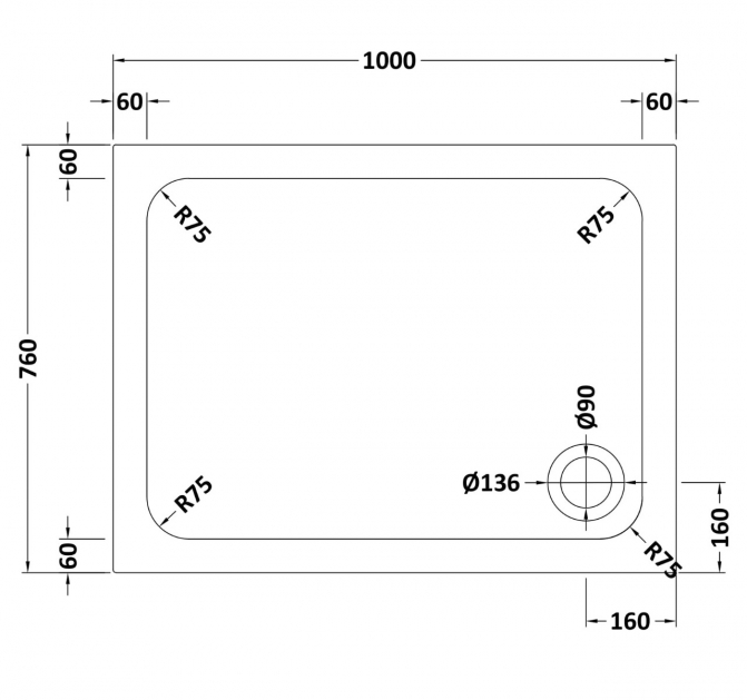 Slate Grey Rectangular Shower Tray 1000 x 760mm - Jewel by Voda Design