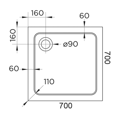 Slate Grey Square Shower Tray 700 x 700mm - Jewel by Voda Design