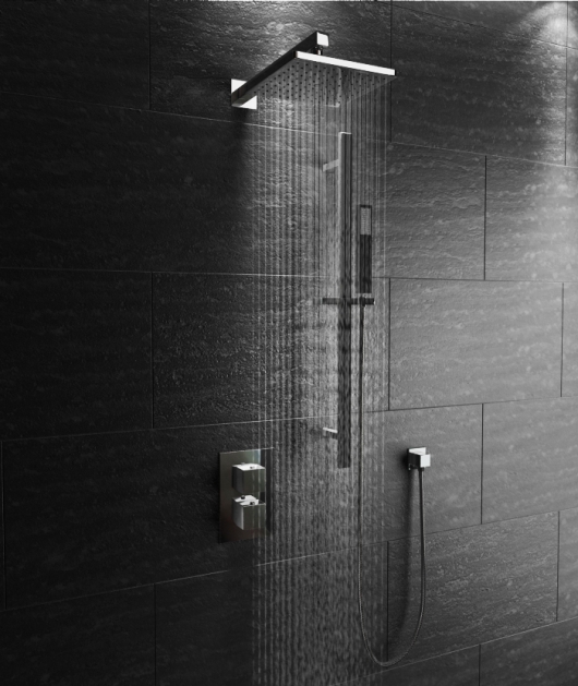 A stylish concealed diverter shower valve set with twin handle valves with square levers.