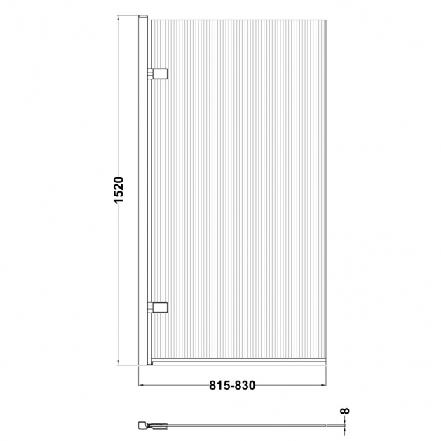 Square Hinged Fluted Bath Screen - 8mm - V-NSSQ7FLBP Matt Black
