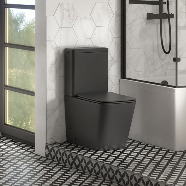 Black Rimless Close Coupled Toilet (Pan, Cistern & Seat)