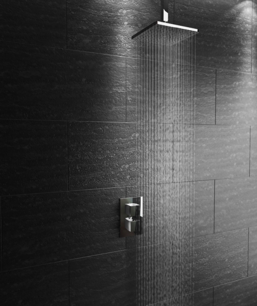 A stylish concealed shower valve set with twin handle valves with square levers.