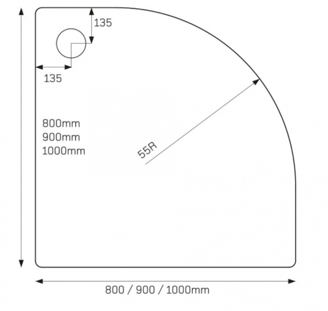 Standard 55mm radius suitable for most quadrant shower enclosures