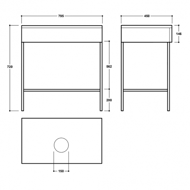 Synergy Berg 800mm Floor Mounted Console Unit Only (Basin Sold Separately)