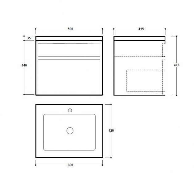 Synergy Float Driftwood 600mm Wall Mounted Vanity Unit and Basin