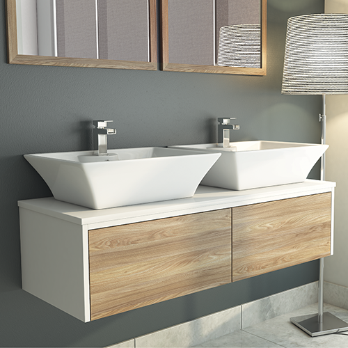 Recreate the catalogue look in your own home with this complete set for the Synergy Float 1200mm Wall Hung Vanity Unit! This set offers you fantastic value on all the items you need to get his and her's basins in your bathroom, complete with double mirror and basin taps included. Amazing style, at an amazing price! The Float Vanity Unit is a truly stunning centrepiece for your bathroom and features 2 large drawers beneath which are big enough to store towels and any other bathroom toiletries. The vanity unit is white but is finished off with a driftwood exterior on the drawers and a sturdy stone top.