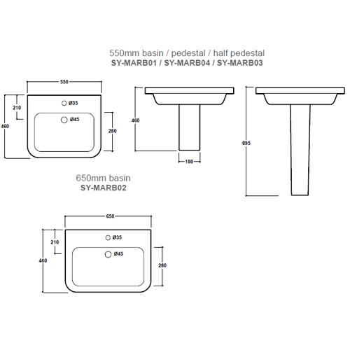 - Depth: 460mm (500mm Basin) / 460mm (600mm Basin)