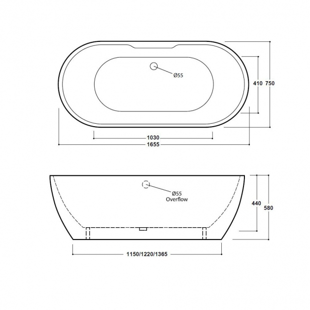 Freestanding Luxury Modern Double Ended Bath 1655mm 1655 x 750mm White