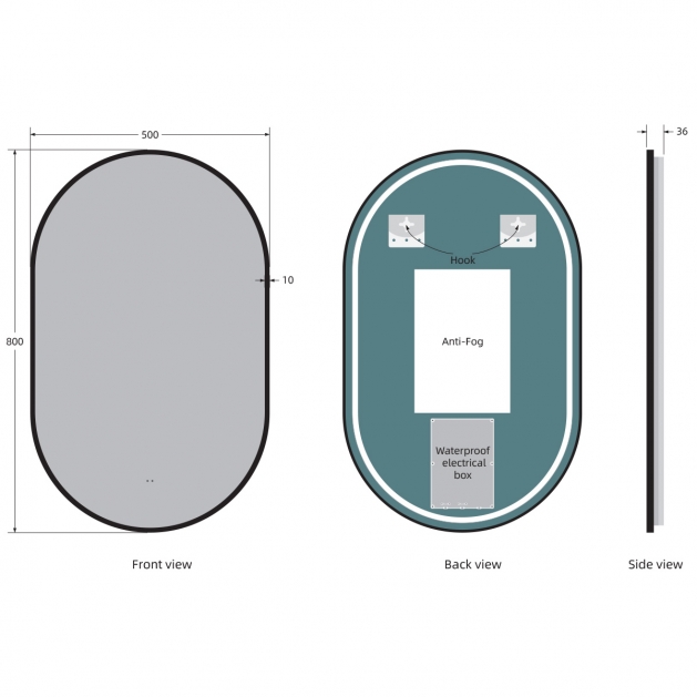 Tablet Black Frame 800mm x 500mm LED Mirror with Colour Change