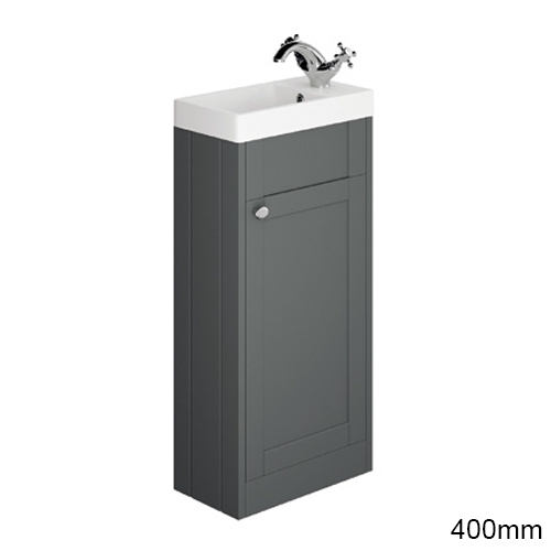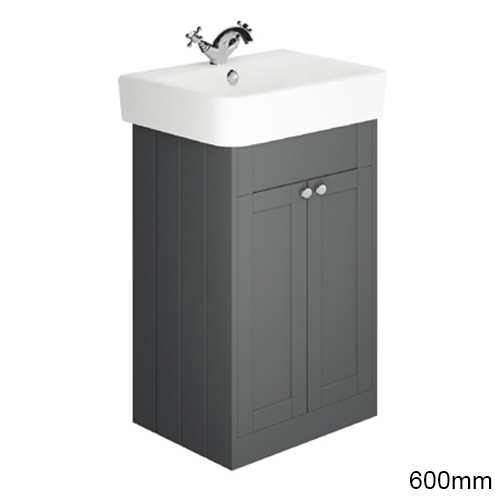 This beautiful traditional floor mounted vanity unit offers a stylish, timeless design in a stain and scratch resistant grey finish.