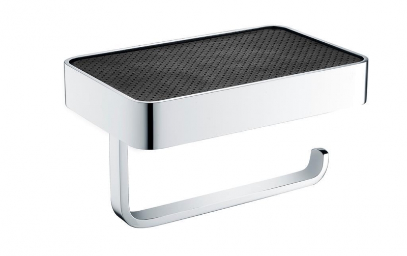 Vercelli Toilet Roll Holder with Leather Shelf - 52.302 Chrome