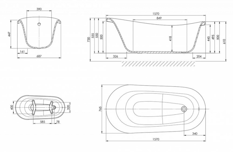 Voda Design Imogen Solid Surface Stonecast Slipper Bath