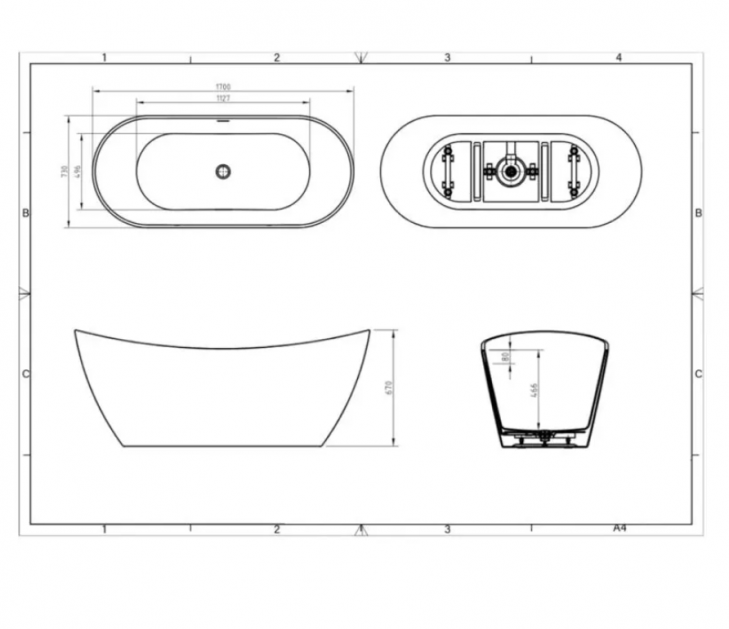 Ives by Voda Design – 1700 x 730mm Freestanding Double Ended Bath with Slim Overflow & White Waste